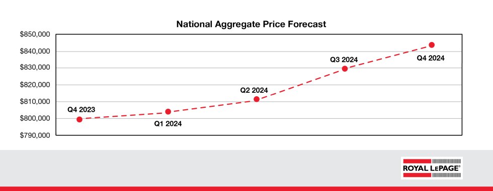 In December, Royal LePage issued its 2024 Market Survey Forecast, projecting that the aggregate price of a home in Canada will increase 5.5 per cent in the fourth quarter of 2024, compared to the same quarter in 2023.